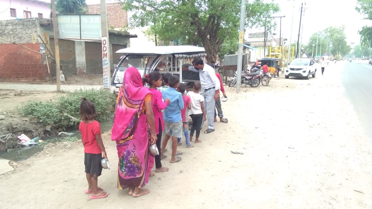 Garib logon Ko khana vitran karte hue